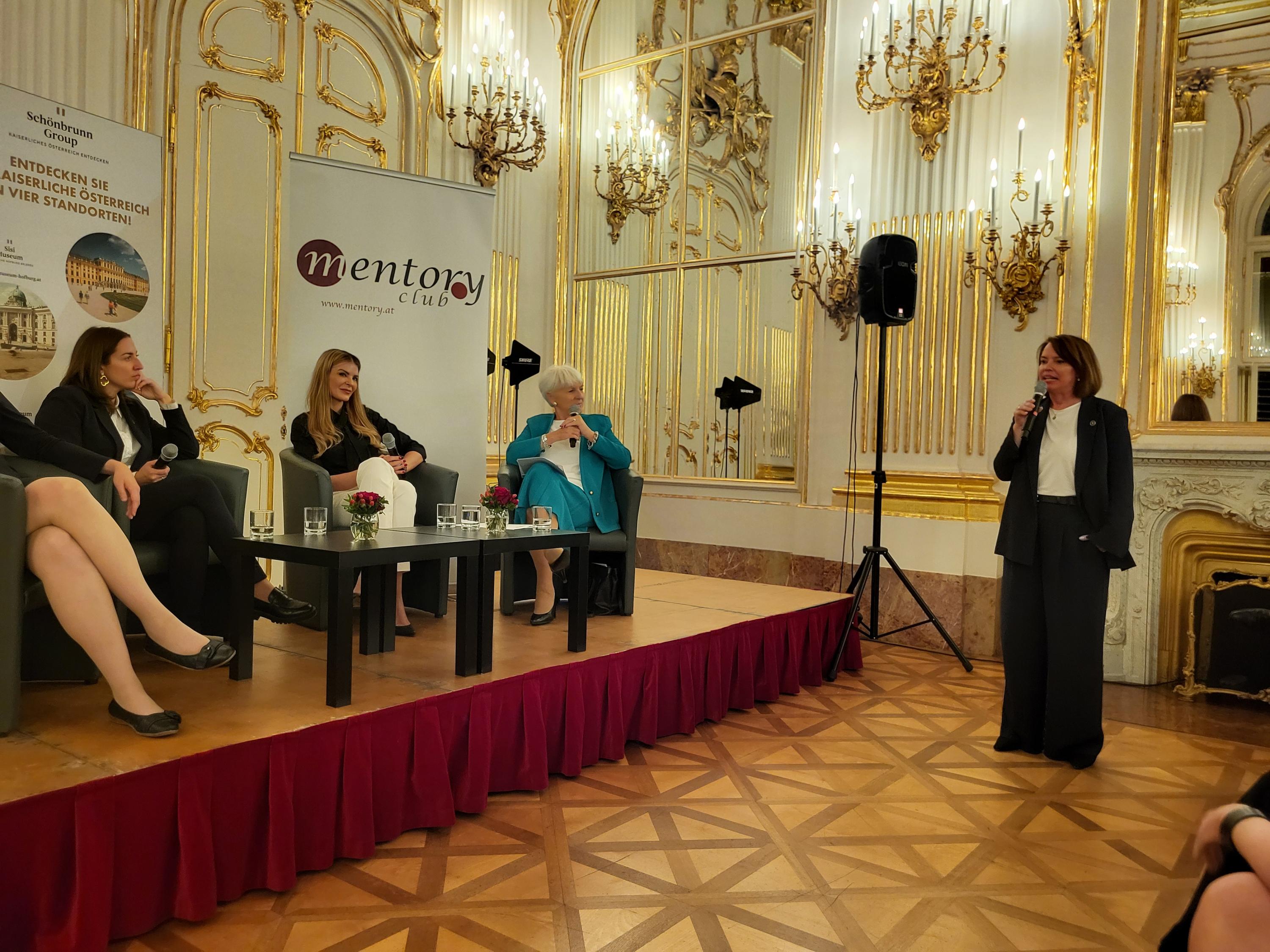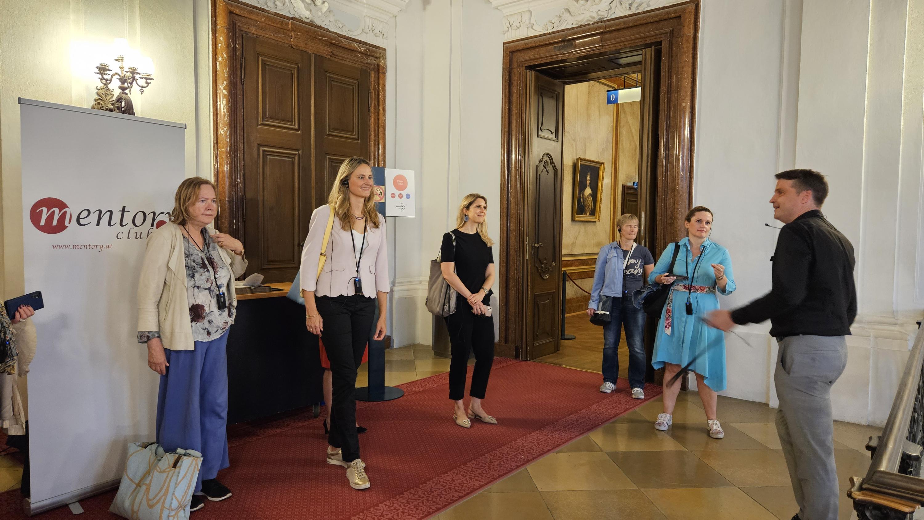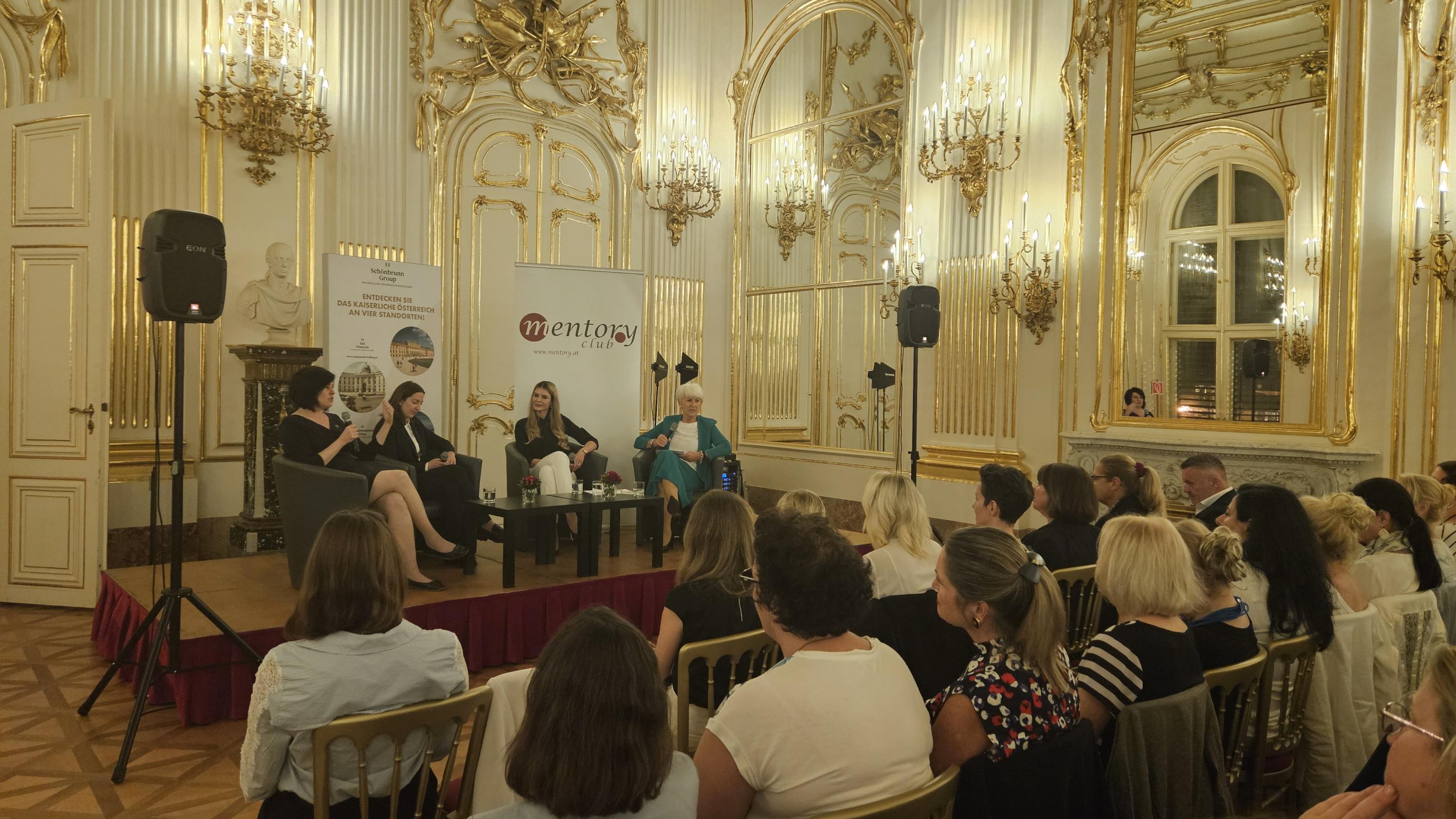 Es ist nicht leicht so viel Frauenpower in einer Nachlese zusammenzufassen, wie wir beim Mentory Clubabend in Schönbrunn erleben konnten. Gleich neun starke Frauen holte sich Geschäftsführer Klaus Panholzer in Führungspositionen der Schönbrunn Group und ist sichtlich stolz darauf, wie er bei der herzlichen Begrüßung erzählte. Mit 62% Frauenanteil unter den MitarbeiterInnen, zeigt sich Schloss Schönbrunn besonders fortschrittlich. Bevor wir Näheres zu den Karrieren der Abteilungsleiterinnen erfahren, hatten die Teilnehmerinnen die Möglichkeit an einer Schlossführung durch die Beletage mitzumachen. Im imposanten Rahmen der Großen Galerie berichteten die weiblichen Führungskräfte über den Weg in ihre Positionen, die spannenden Herausforderungen in einem ständig wachsenden Unternehmen und gaben uns eine Übersicht über die geschäftlichen Bereiche der Schönbrunn Group. Es herrschte eine Energie und ein Miteinander unter den Frauen, die ansteckend und in dieser Form selten woanders zu finden ist. Der Titel des Abends „Inspiration, Austausch, Perspektiven“ war Programm. Bei einem Flying Dinner mit sensationeller Aussicht von der Schlossterrasse klang der unterhaltsame Abend aus.
