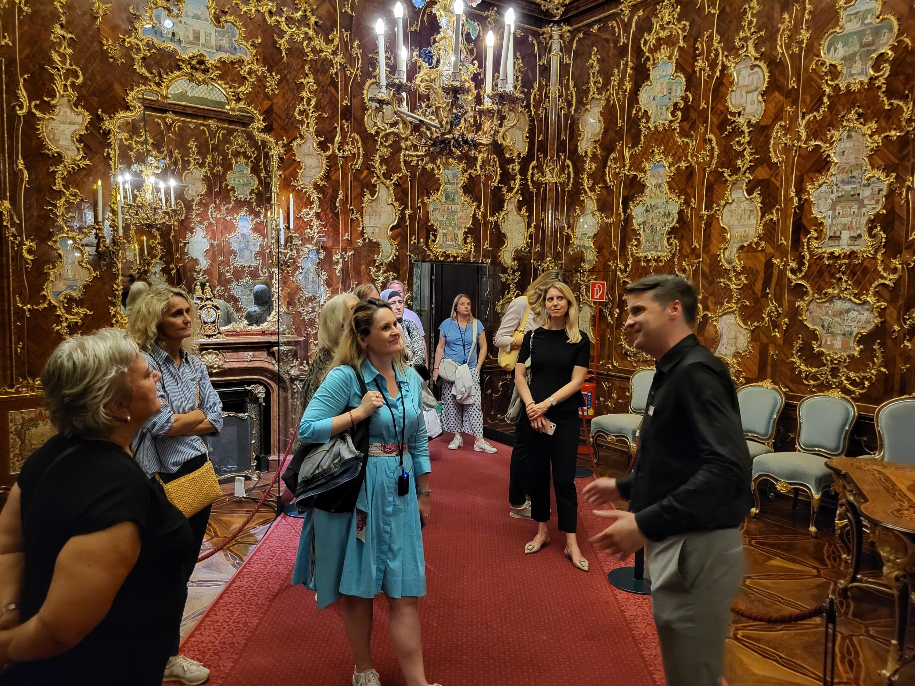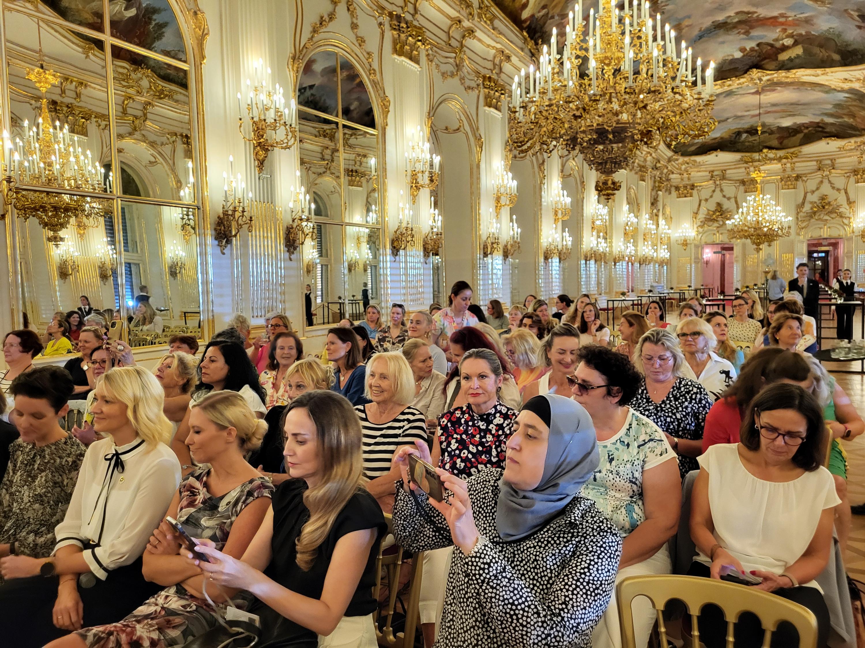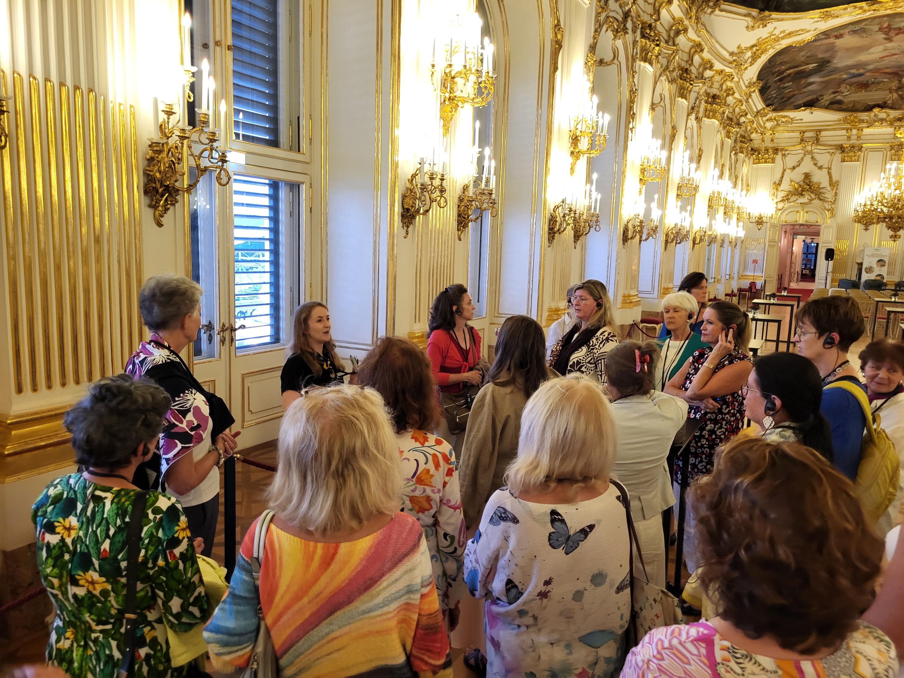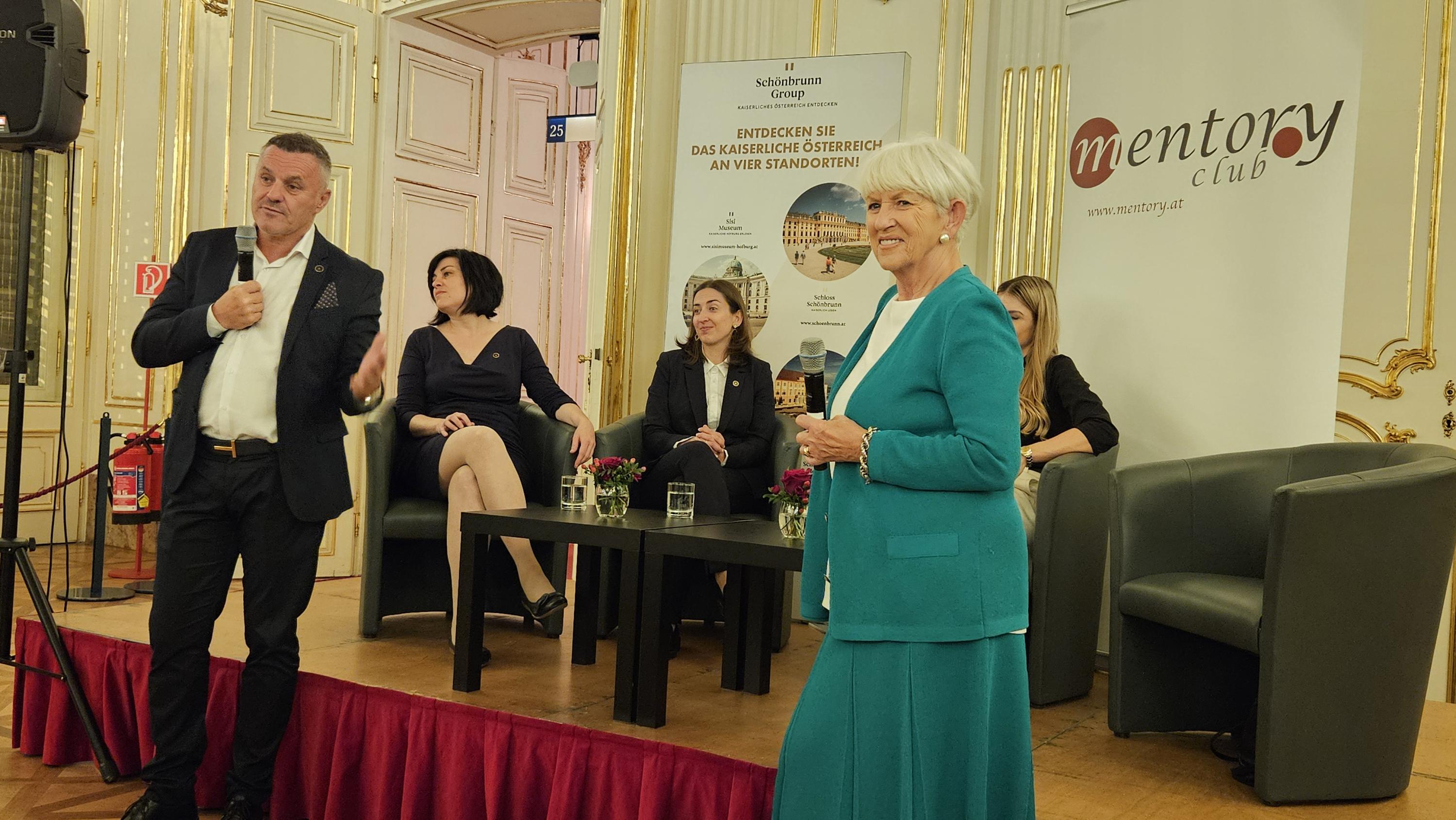 Es ist nicht leicht so viel Frauenpower in einer Nachlese zusammenzufassen, wie wir beim Mentory Clubabend in Schönbrunn erleben konnten. Gleich neun starke Frauen holte sich Geschäftsführer Klaus Panholzer in Führungspositionen der Schönbrunn Group und ist sichtlich stolz darauf, wie er bei der herzlichen Begrüßung erzählte. Mit 62% Frauenanteil unter den MitarbeiterInnen, zeigt sich Schloss Schönbrunn besonders fortschrittlich. Bevor wir Näheres zu den Karrieren der Abteilungsleiterinnen erfahren, hatten die Teilnehmerinnen die Möglichkeit an einer Schlossführung durch die Beletage mitzumachen. Im imposanten Rahmen der Großen Galerie berichteten die weiblichen Führungskräfte über den Weg in ihre Positionen, die spannenden Herausforderungen in einem ständig wachsenden Unternehmen und gaben uns eine Übersicht über die geschäftlichen Bereiche der Schönbrunn Group. Es herrschte eine Energie und ein Miteinander unter den Frauen, die ansteckend und in dieser Form selten woanders zu finden ist. Der Titel des Abends „Inspiration, Austausch, Perspektiven“ war Programm. Bei einem Flying Dinner mit sensationeller Aussicht von der Schlossterrasse klang der unterhaltsame Abend aus.